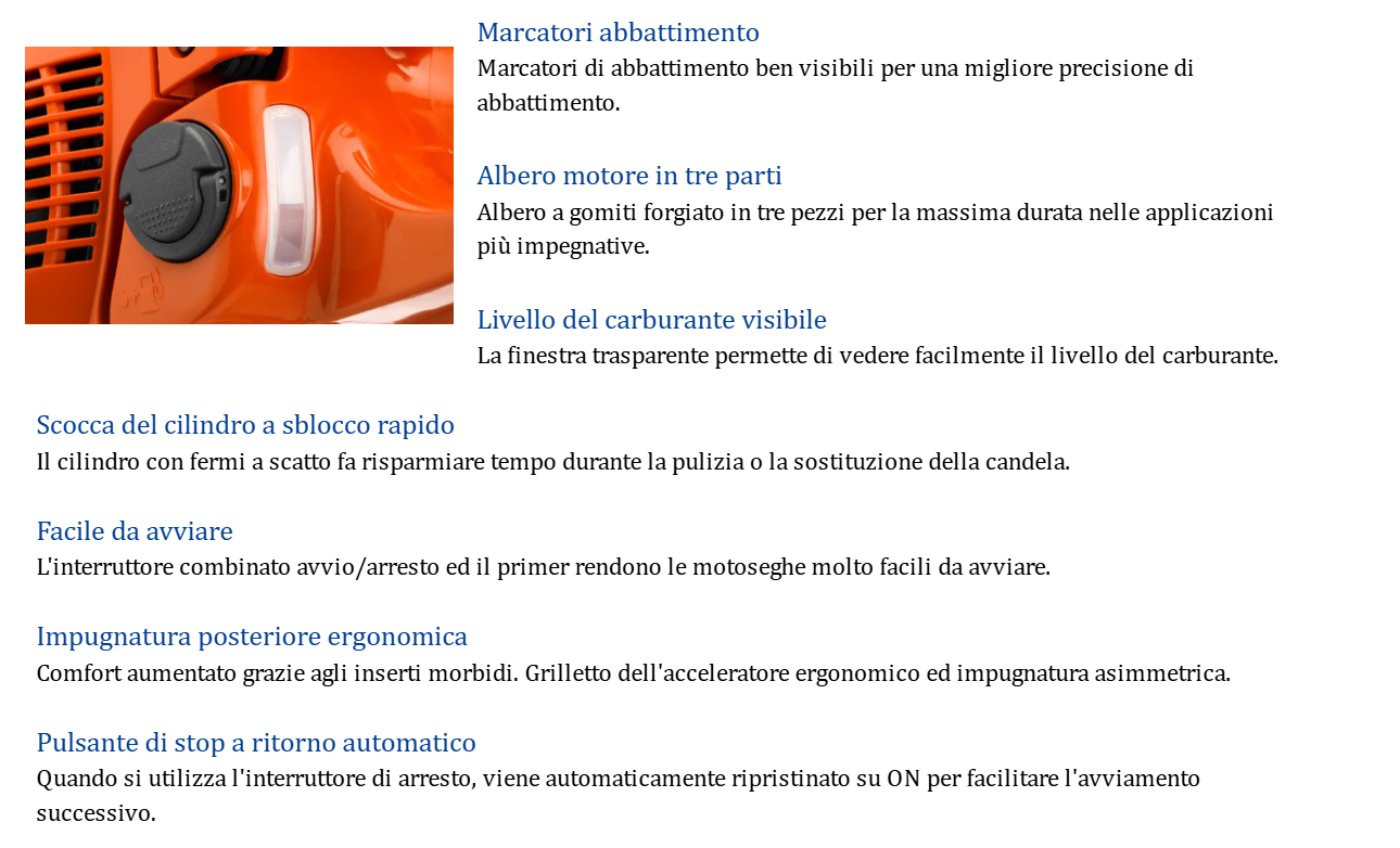 La motosega semiprofessionale giusta per l'utilizzatore che cerca una macchina piccola ma potente ed eccezionalmente facile da avviare. L'avviamento è facilissimo e richiede un minore strappo, dotata di tappi carburante con alette a scomparsa. Equipaggiata con motore X-Torq® per un consumo ridotto ed un livello di emissioni estremamente ridotto, primer ed interruttore di stop a ritorno automatico per la più facile delle accensioni. Air Injection™ per un filtro dell'aria sempre pulito e LowVib per ridurre le vibrazioni su mani e braccia.