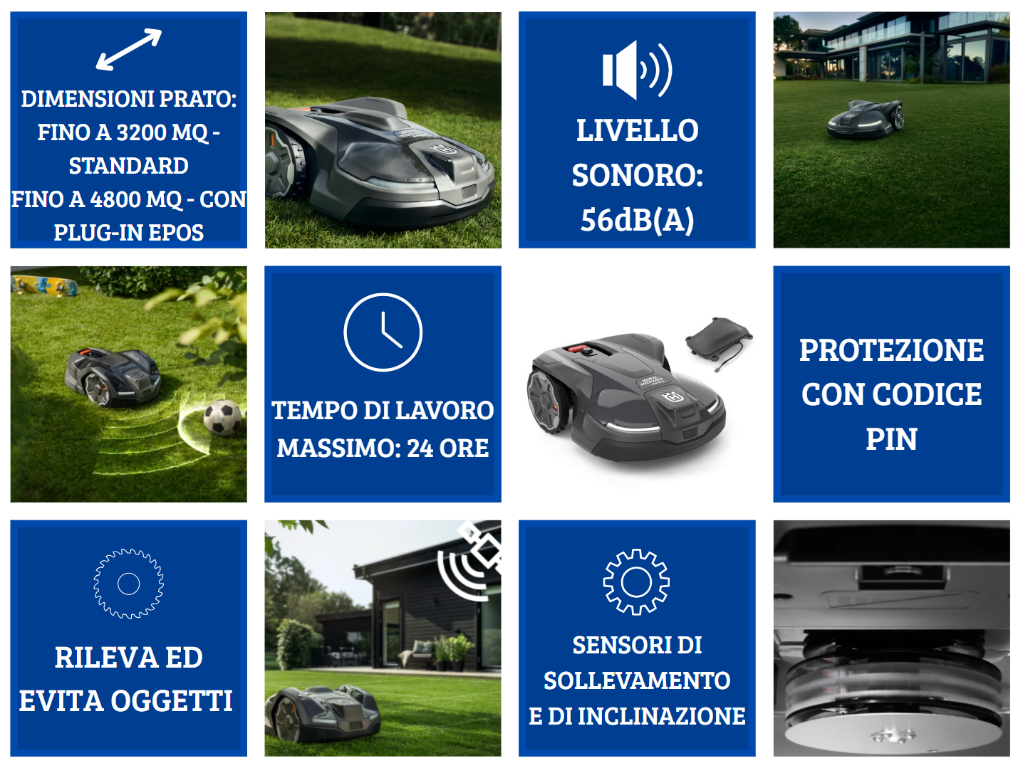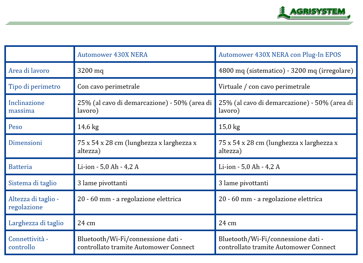 Husqvarna Automower® 430X NERA è un robot tagliaerba per prati complessi fino a 3200/4800 m². Taglio di precisione con perimetri virtuali grazie all'app Automower® Connect e il kit Husqvarna EPOS® disponibile come optional, che elimina il rischio di rottura dei cavi. Funzioni intelligenti come evita oggetti riducono il rischio di arresti non pianificati e, con la mappa virtuale creata tramite GPS, viene abilitato Automower® Zone Control. Questo consente di regolare facilmente la cura del prato tramite telefono cellulare e creare aree di lavoro con impostazioni diverse e aree da evitare temporanee. Il modello 430X NERA può anche essere integrato con i dispositivi domotici, in modo da poter utilizzare il controllo vocale con Alexa o Google Home.